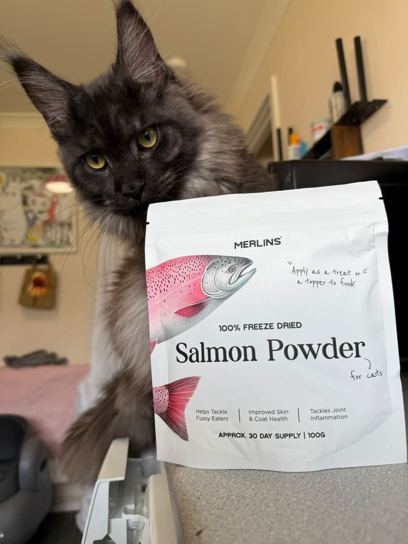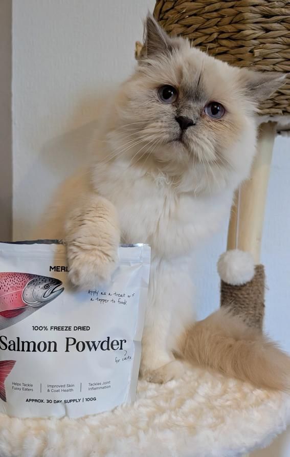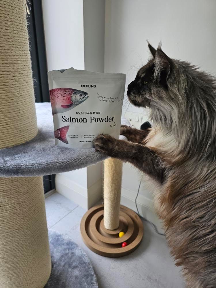 Our freeze dried Salmon powder is safe and beneficial for cats of all ages, from playful kittens to wise senior cats- See serving instructions for serving amounts
